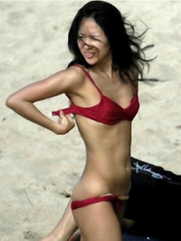 妈妈有张中日混血的精致脸蛋,白皙如雪的肌肤特别的漂亮,而那大大的美丽眼睛,长长的黑色眼睫毛,那乌黑均匀的眉毛,那可爱小巧的鼻子,以及那性感诱人的两片鲜红红唇,还有那尖尖的下巴,这样的打扮形成妈妈完美的脸蛋。
